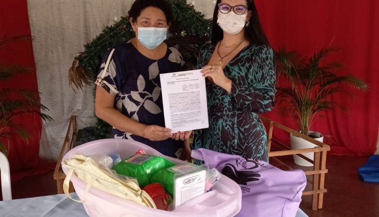 O kit é composto de batom, espelho, roupa íntima, camisola, toalha de banho, absorvente e material de higiene pessoal. Já foram entregues 30 kits.